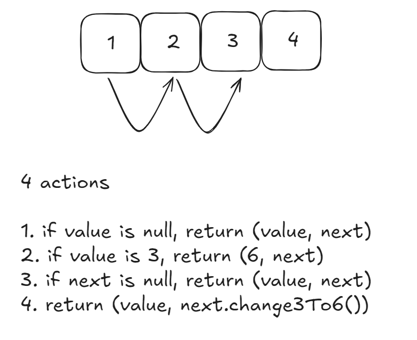 이 점을 잘 생각하며, 3을 만나면 6으로 바꾼 링크드 리스트를 반환하는 함수를 생각해보자.